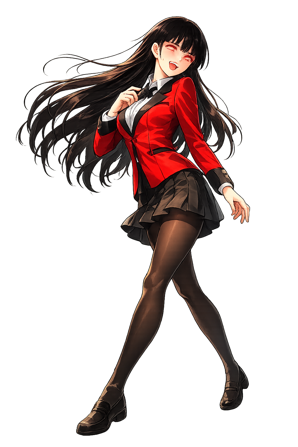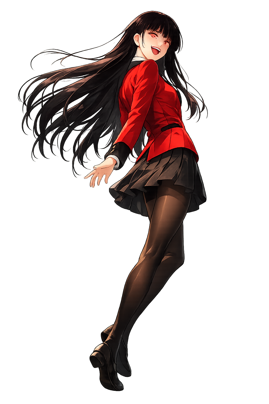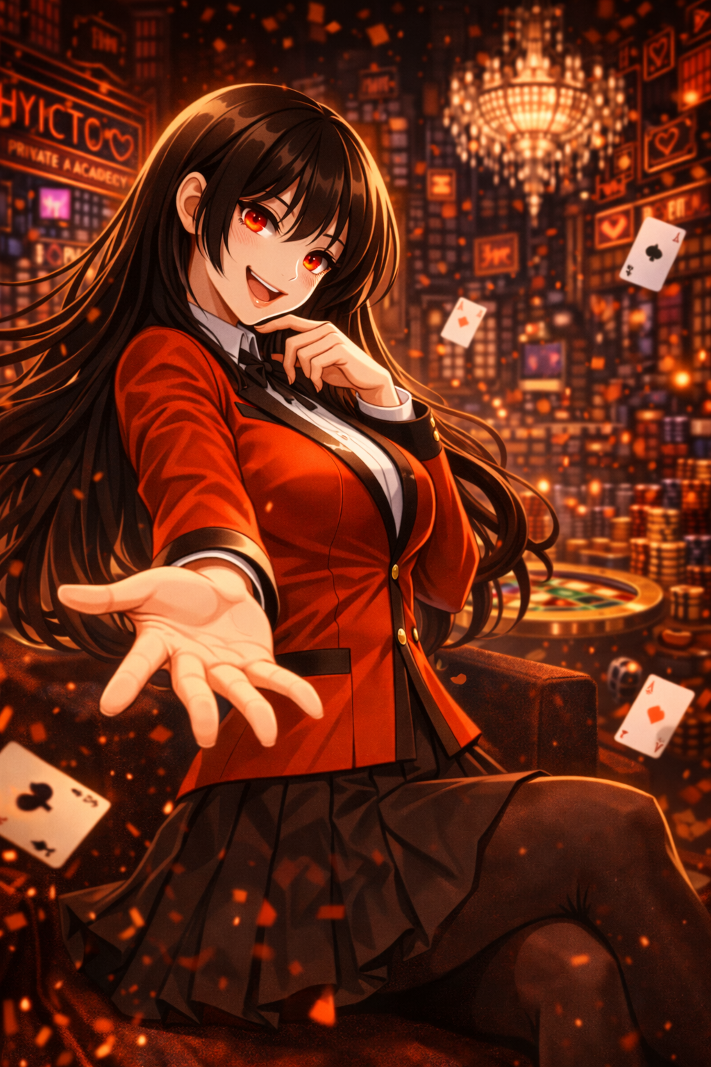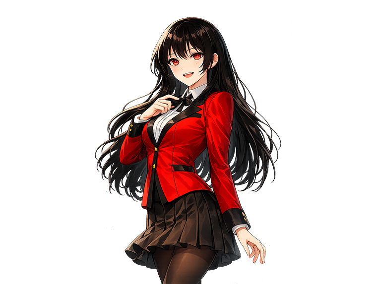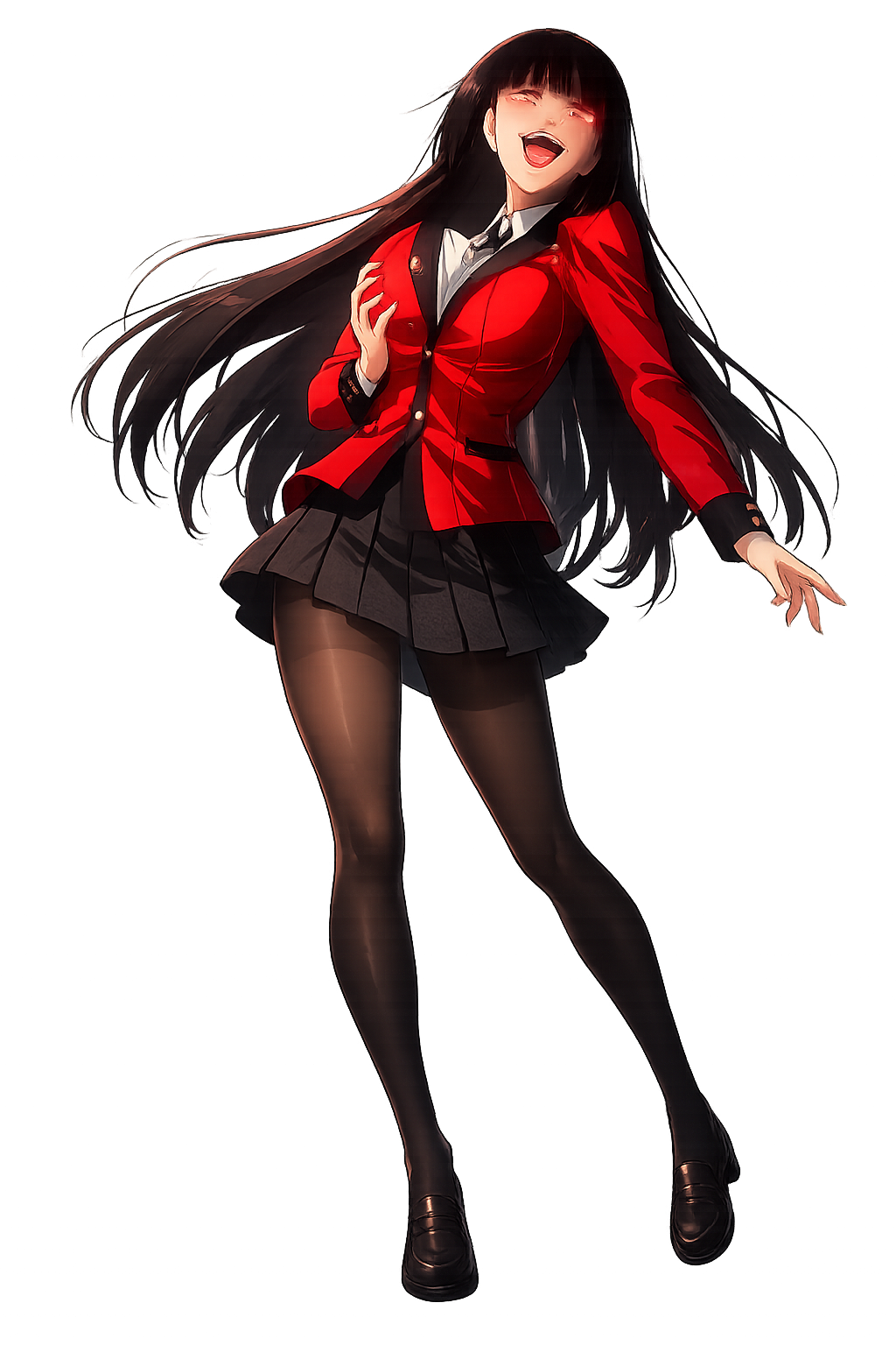 Yumeko Jabami (蛇喰 夢子) is the main protagonist of Kakegurui - Compulsive Gambler. She's a second-year transfer student at Hyakkaou Private Academy and the classmate of Ryota Suzui and Mary Saotome. Yumeko is a member of the family of Kirari Momobami that challenges her for Hyakkaou Private Academy.